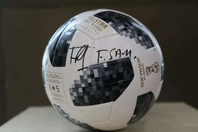(圖:國(guó)際足聯(lián)秘書(shū)長(zhǎng)法特瑪·薩姆拉簽名球)