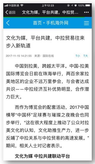 國之交,在民相親。如今,隨著中拉之間的政治互信不斷深化和中拉合作的廣泛開展,越來越多的拉美企業想要走進中國,也有越來越多的中國企業在拉美發展,文化交流將增進雙邊互信, 文化力的營造將極大地助推中拉往來步入新的發展軌道。