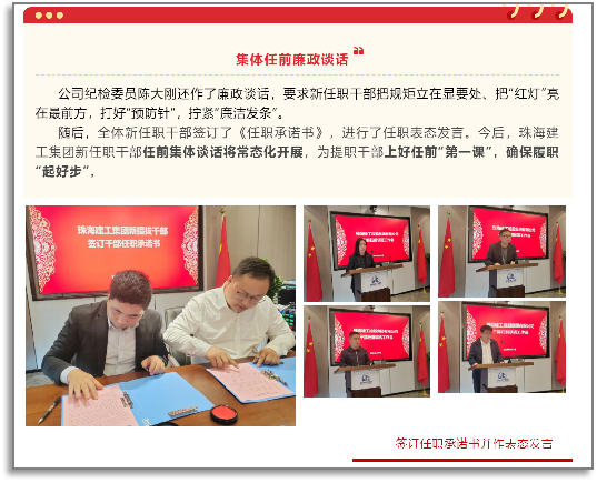 黨委書記開展任前集體談話,干部任職前進行公開表態。