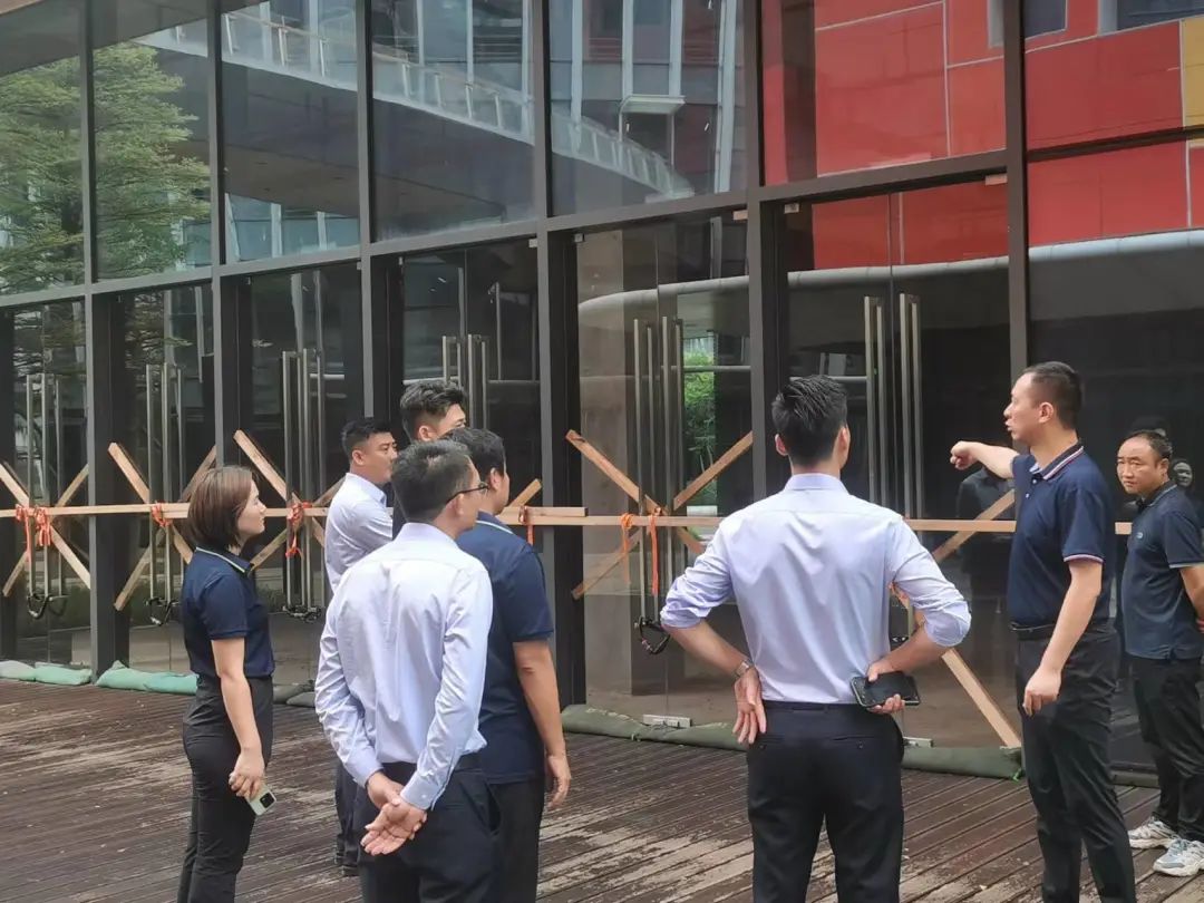 同時安排人員24小時駐守園區,對園區所有樹木、樓宇出入口進行支撐加固,及時對園區企業客戶發布預警通告及需相應關注的事項等,切實落實各項防御措施。