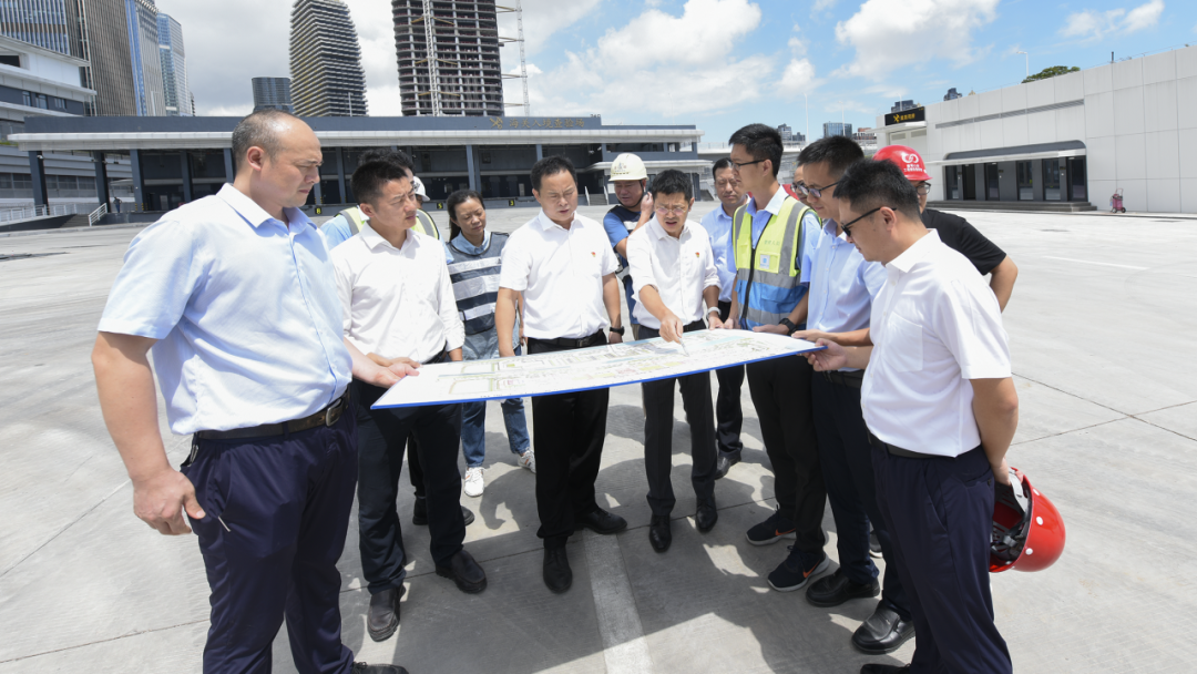 橫琴粵澳深度合作區執行委員會主任李偉農視察橫琴口岸二期通關部分整體建設情況。
