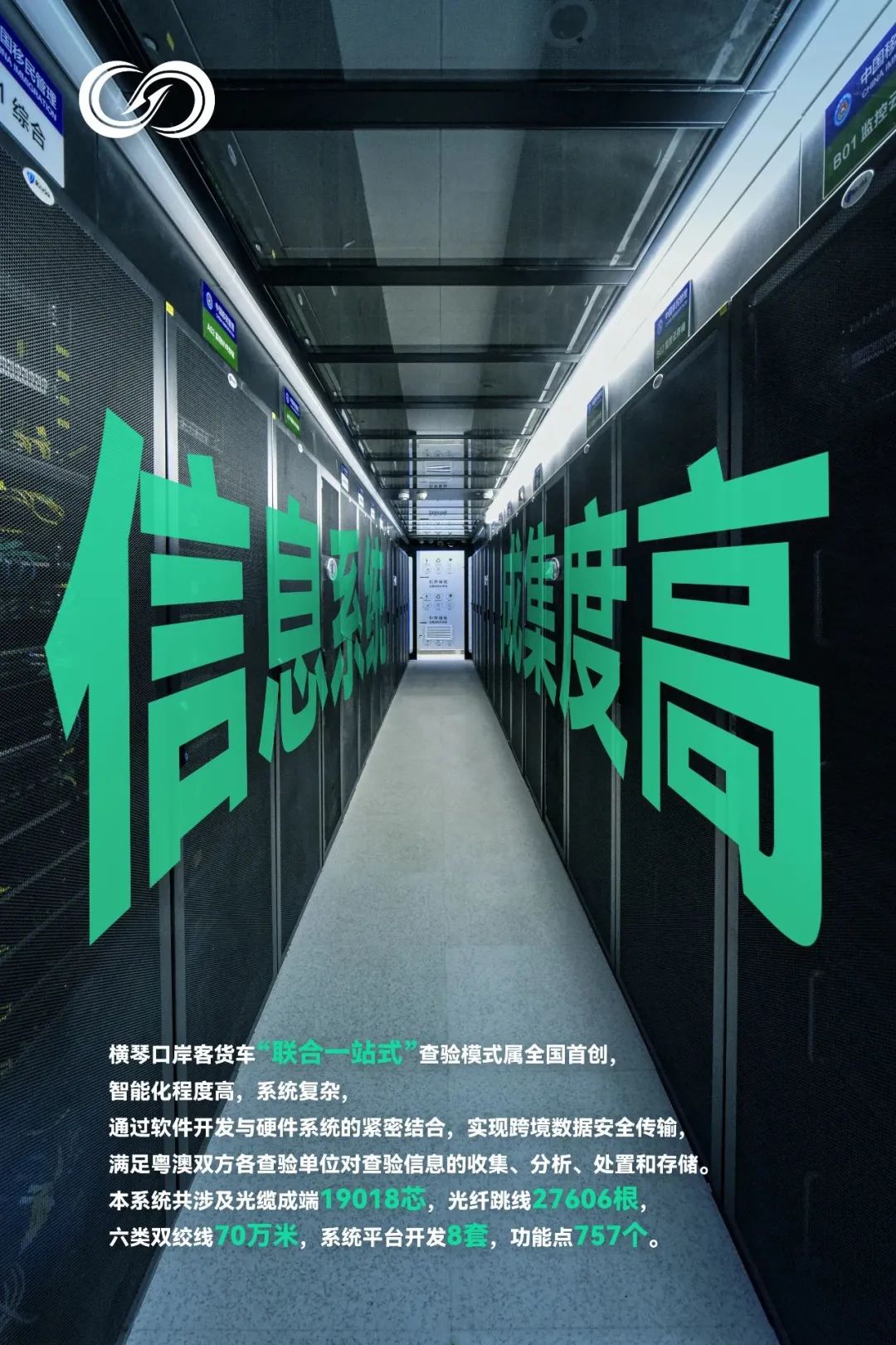 橫琴口岸客貨車“聯合一站式”查驗模式屬全國首創,智能化程度高、系統復雜,信息化工程將軟件系統、硬件設備與通信系統高度集成,指揮部通過軟件開發與硬件系統的緊密結合,實現跨境數據高效傳輸,以滿足粵澳雙方各查驗單位對查驗信息的收集、分析、處置和存儲。