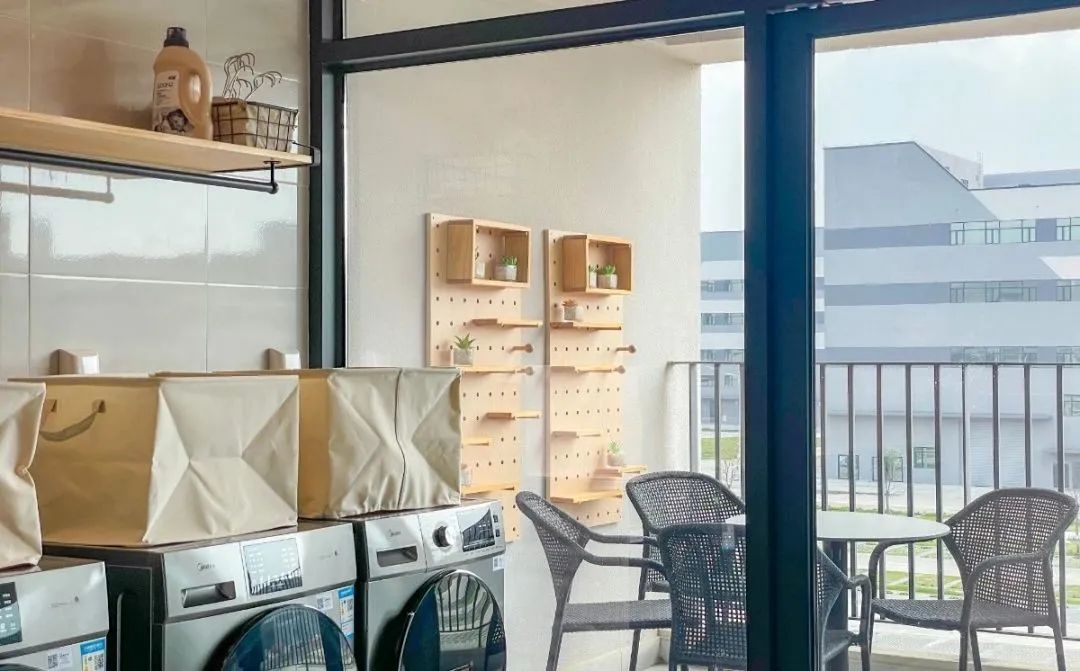 宿舍內配備公共洗衣房,熨衣板、洗衣機、晾衣簍、洗手池等設施一應俱全。