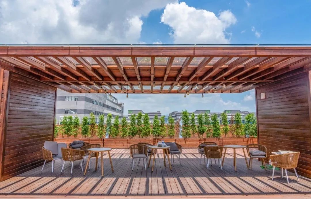 產業工人下班后,可以在這里看落日余暉,也可以舉杯對飲。露天大平臺,在重要的賽事期間,還可以成為觀看與討論賽事的交流社區。