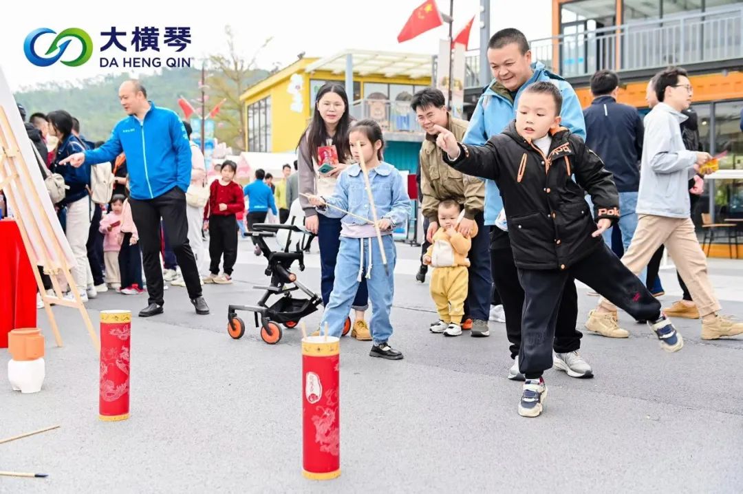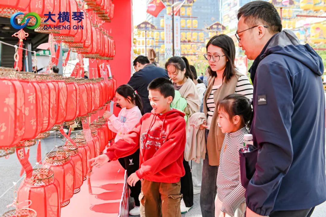 喧天的鑼鼓,精彩的舞龍舞獅,豐富的小游戲,趣味十足的定向集章,吸引了眾多游客駐足打卡。活動中,有不少來自澳門的游客手拿集章卡,在游戲區(qū)進行游玩和探索,特別是在猜燈謎游戲中,許多孩子組團猜謎,和家長們一起開動腦筋,熱情討論,處處歡聲笑語。