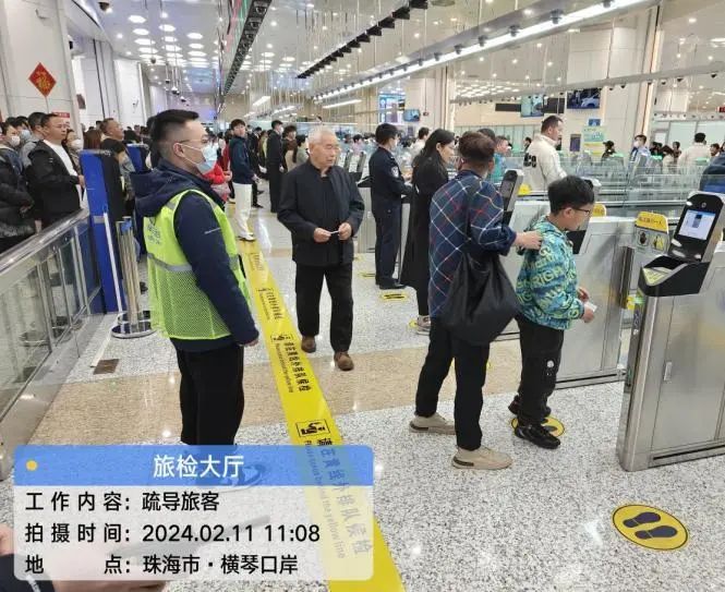 相較往年,今年春節(jié)橫琴口岸呈現(xiàn)出客流高峰提前、持續(xù)時間長、出入高峰疊加等特點,2月11日至16日(大年初二至初七)連續(xù)6天出入單向客流均超過3萬人次。其中,2月12日(大年初三)橫琴口岸單日客流超8.2萬人次,創(chuàng)橫琴口岸成立以來歷史新高。為應(yīng)對春節(jié)期間口岸高位客流,珠海大橫琴口岸實業(yè)有限公司(下稱大橫琴口岸公司)節(jié)前召開專題會議,提前部署應(yīng)急人員、物資、設(shè)備等通關(guān)安全保障;春節(jié)期間,根據(jù)客流量變化,大橫琴口岸公司通過科學(xué)增加人力、設(shè)置蛇形緩沖通道、屏幕投放指引等措施,多管齊下加強(qiáng)出入境旅客分流引導(dǎo),防止因高客流量發(fā)生擁擠、踩踏等治安事件的發(fā)生。另外在現(xiàn)場設(shè)置“特別通道”,為老人、孕婦和殘疾人等行動不便的旅客提供便利,并設(shè)置了醫(yī)療救援,以備過關(guān)旅客有不時之需。