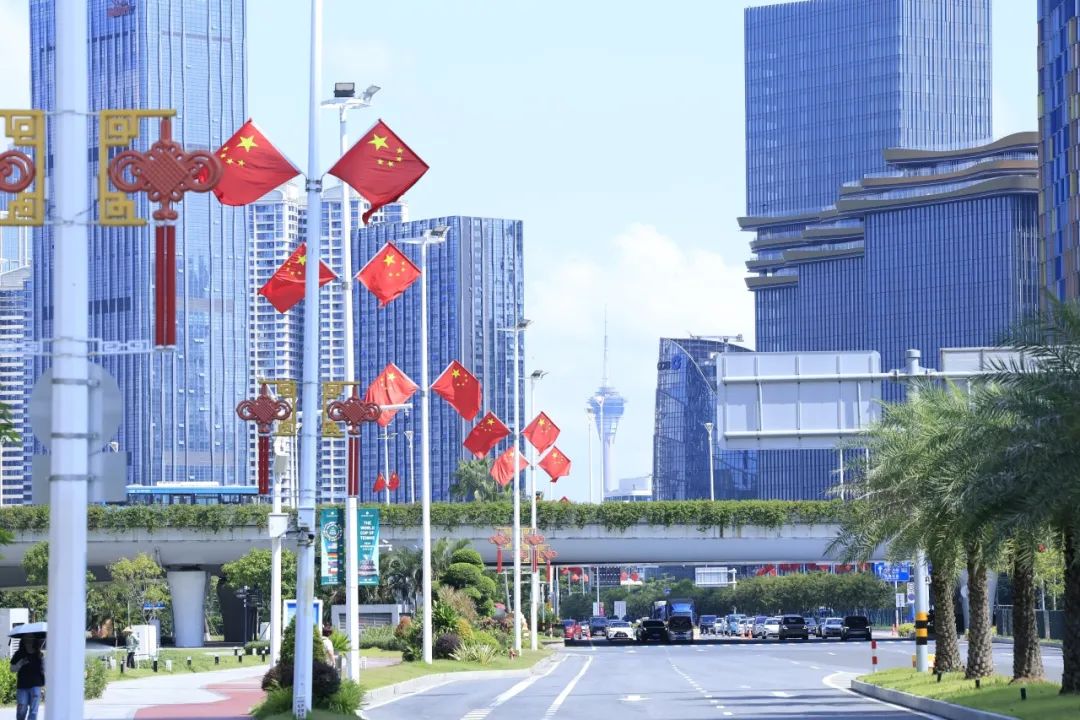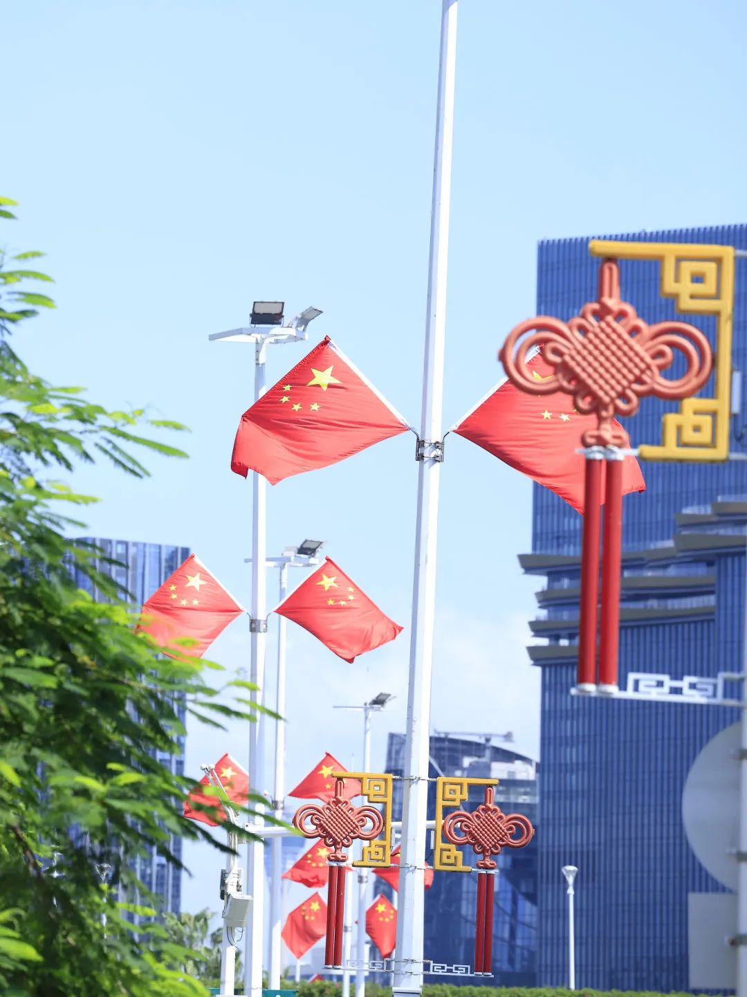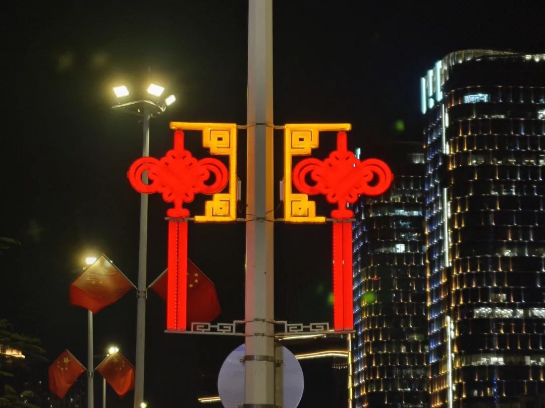隨著國慶的腳步漸近,橫琴粵澳深度合作區(以下簡稱合作區)處處洋溢著喜慶歡快的節日氛圍,高高掛起的中國結,璀璨絢麗的創意燈飾,清新怡人的綠化美景……每一處都在訴說著節日的喜悅,在合作區城市規劃和建設局指導下,珠海大橫琴城市公共資源經營管理有限公司(以下簡稱大橫琴城資)全面開展城市美化亮化工作,在合作區各主次干道、公園、重要節點等地,精心設計布置,以節日盛裝,向祖國母親深情告白。