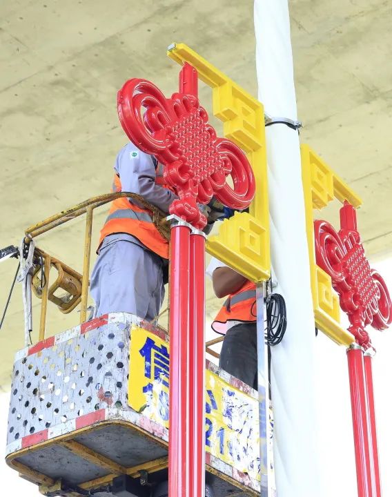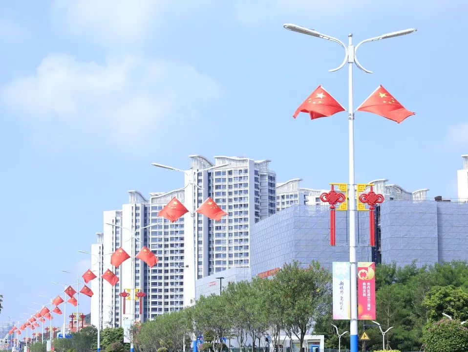 大橫琴城資在港澳大道、環島西路等重點路段懸掛了 230套中國結,以亮麗的形象喜迎國慶。