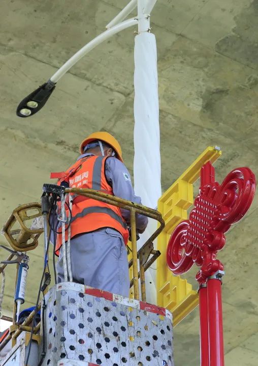 對環島東路的標志性飄帶墻進行精細清洗,讓這道城市風景線以更加靚麗的面貌迎接八方來客,展現合作區的熱情與活力。