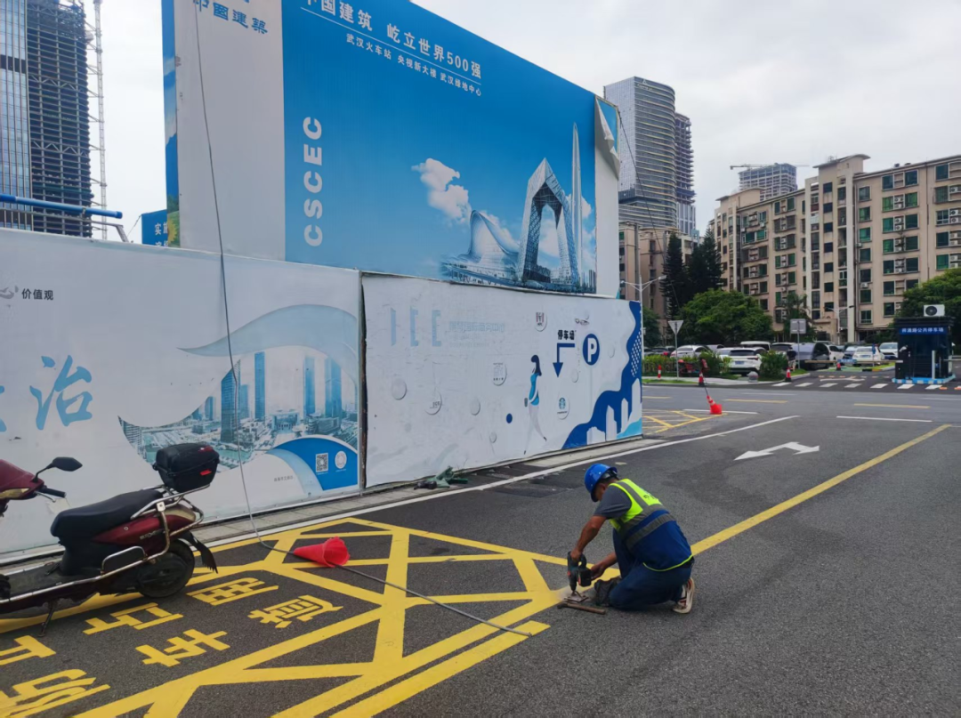 寶鷹建科迅速組織對所有在建項目的大型機械設備、工地的活動板房(辦公區、生活區)、圍擋、加工棚、安全網等臨時設施進行全面檢查和加固。對所有工地的臨時用電線路、配電箱(柜)進行排查,臺風來臨前切斷除應急照明、排水設備外的所有非必要電源,防止觸電和電氣火災事故。
