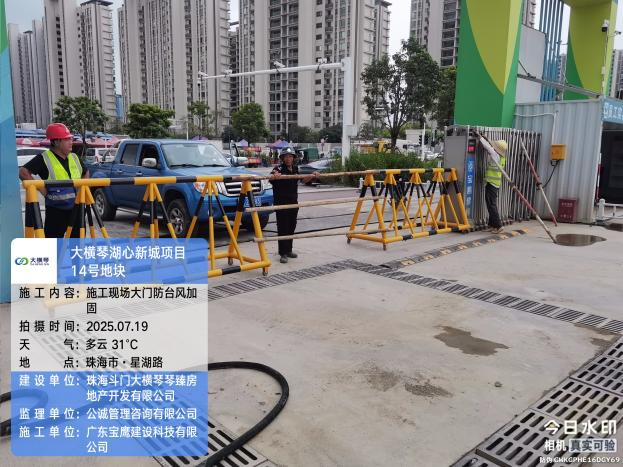 大橫琴股份公司提前部署防風專項排查,組織對橫琴環島西路二期及環島西路至長隆大道繞行大橫琴山道路工程、厚樸道擴建工程等17個在建項目開展全覆蓋檢查。重點排查起重設備、攪拌樁機械等大型設備的加固情況,以及深基坑、工地圍擋、臨時工棚、施工臨時用電等項目的防護措施。累計發現隱患問題20余項,已于7月19日17時前全部完成整改。